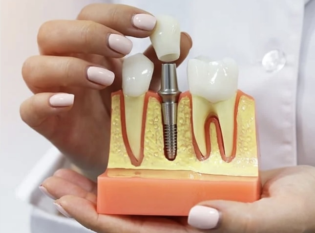 Dental implants are comprised of two parts: the titanium root fixture, or post, and the dental restoration that is affixed on top. The titanium post will be placed into the bone below the gumline for a sturdy foundation. As a result, the implant can be stronger than the natural tooth. Once the healing process is complete, the restoration (dental crown, implant-supported dental bridge, or implant denture) will be attached. Dr. Shen endeavors to provide the most natural-looking outcome possible while delivering exceptional beauty and durability.